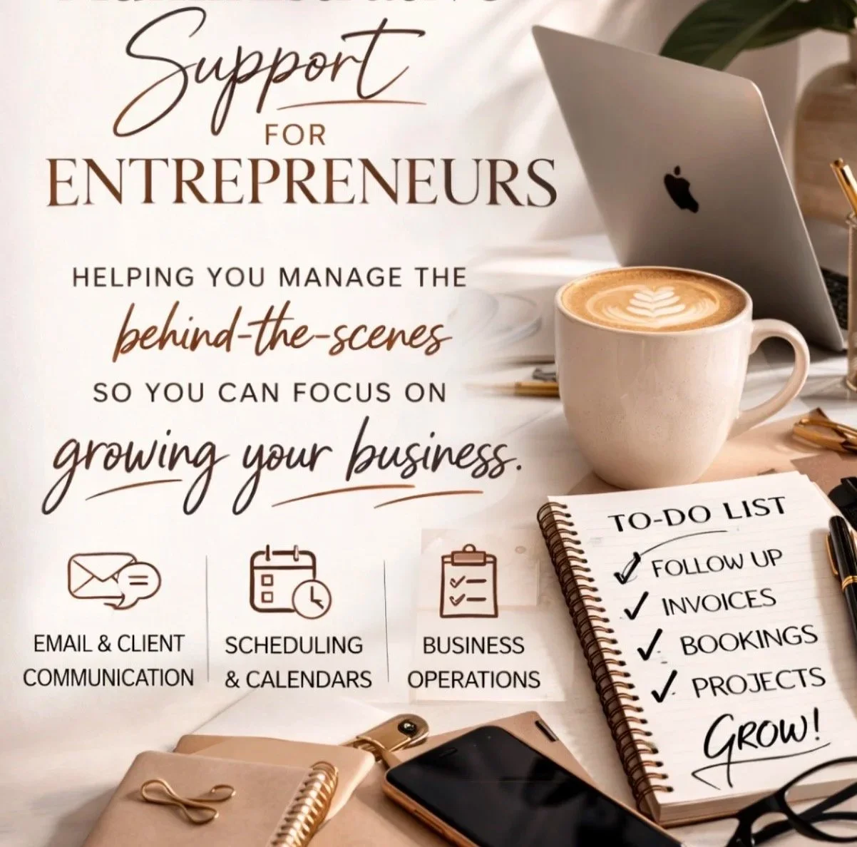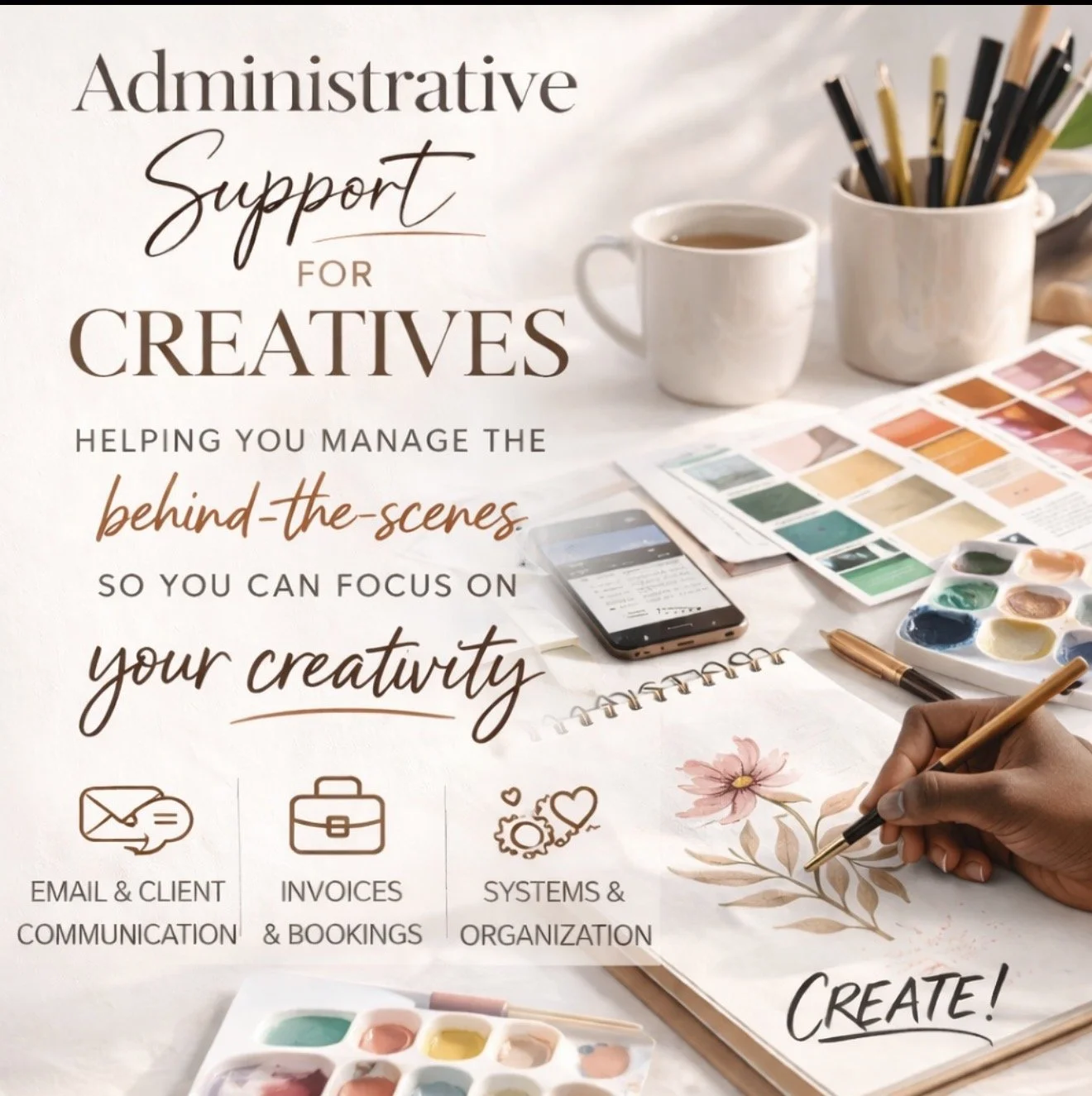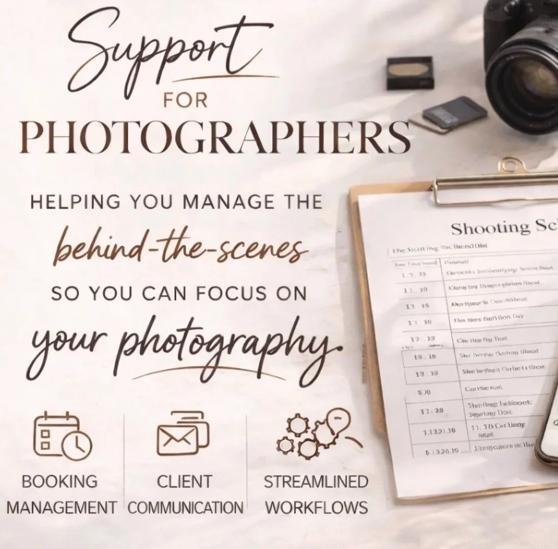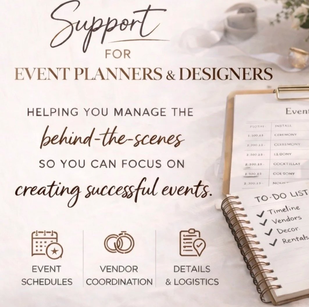 As a creative partner and operations support professional, I help manage the details that keep your business running smoothly — from client communication and scheduling to vendor coordination and project logistics.